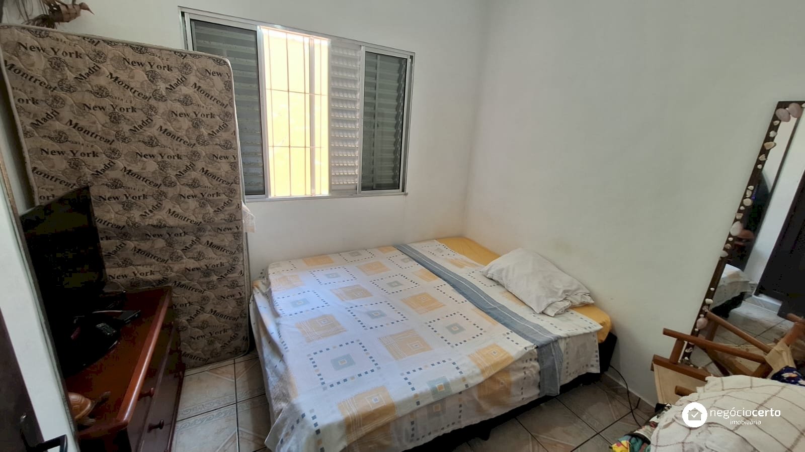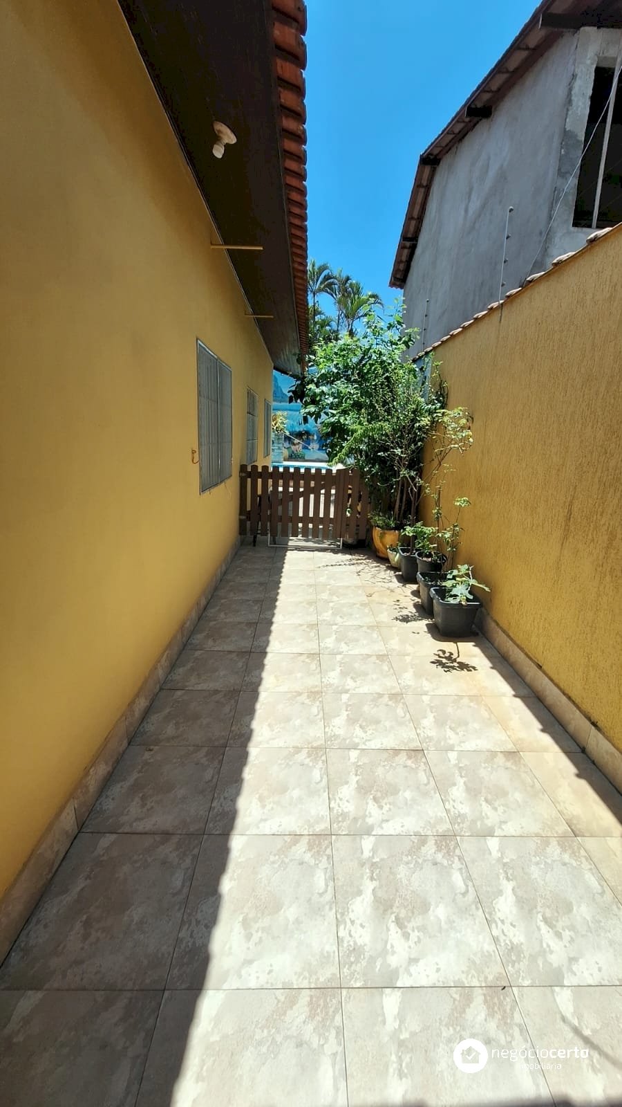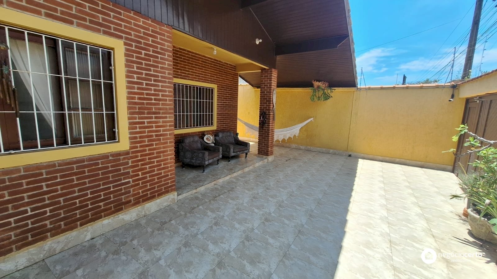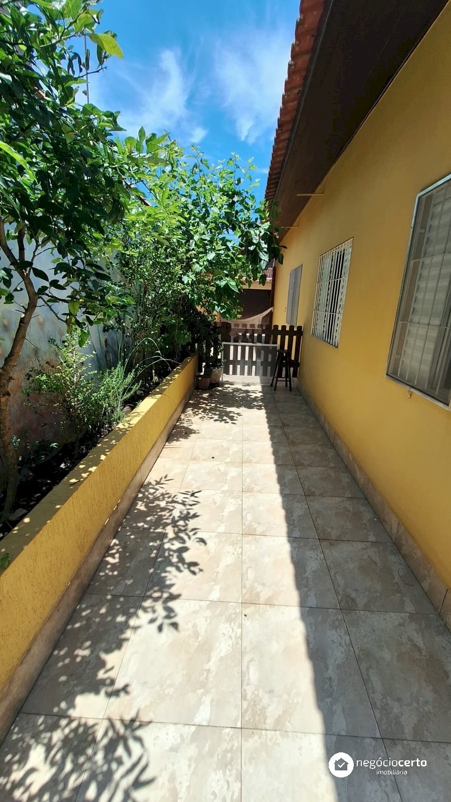 A casa principal, totalmente térrea, possui 3 dormitórios, uma ampla sala com uma aconchegante varanda e uma cozinha integrada.