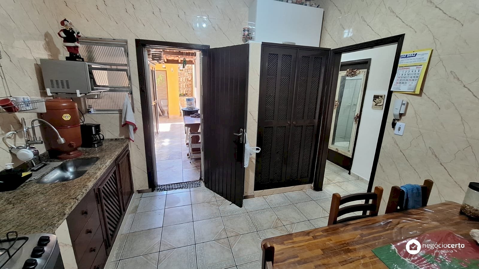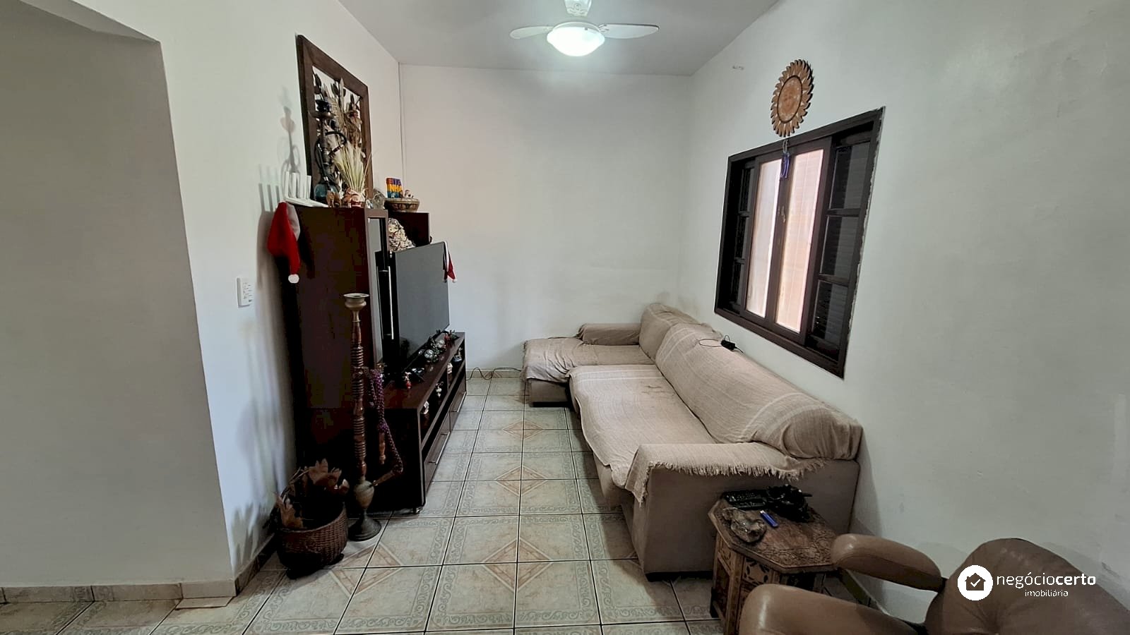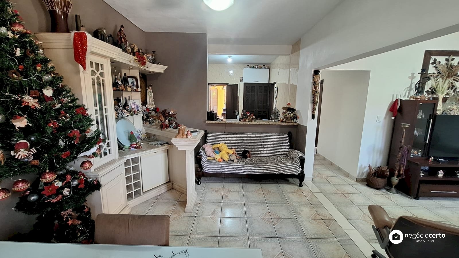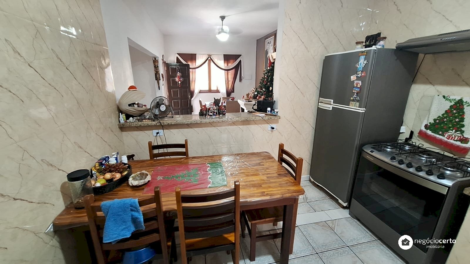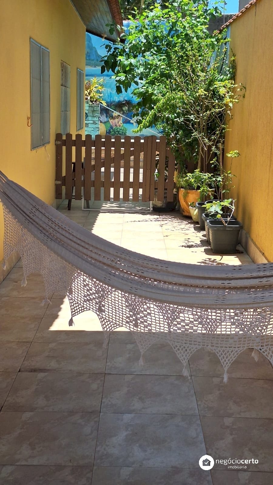 A casa principal, totalmente térrea, possui 3 dormitórios, uma ampla sala com uma aconchegante varanda e uma cozinha integrada.