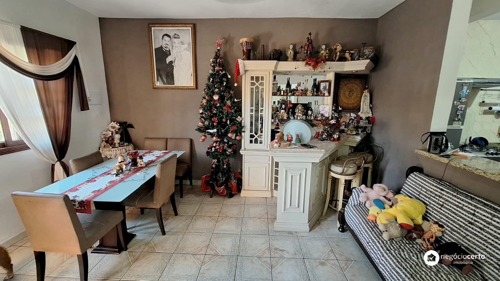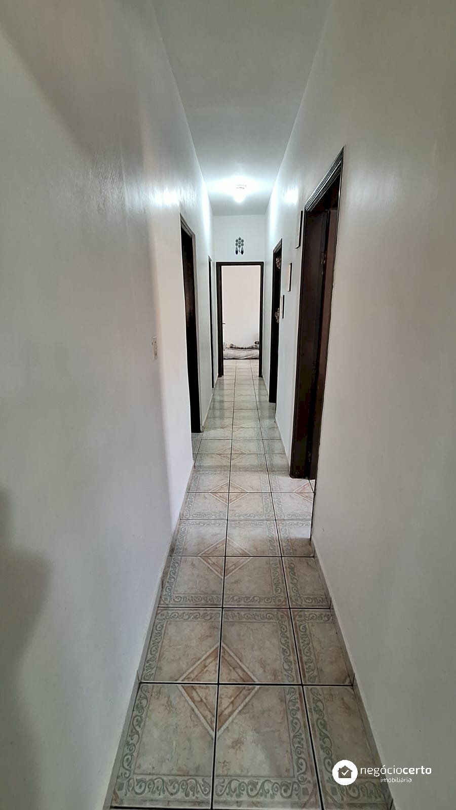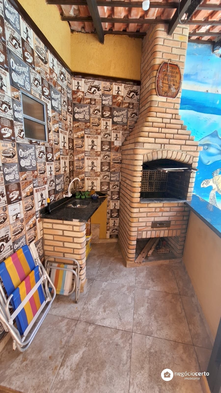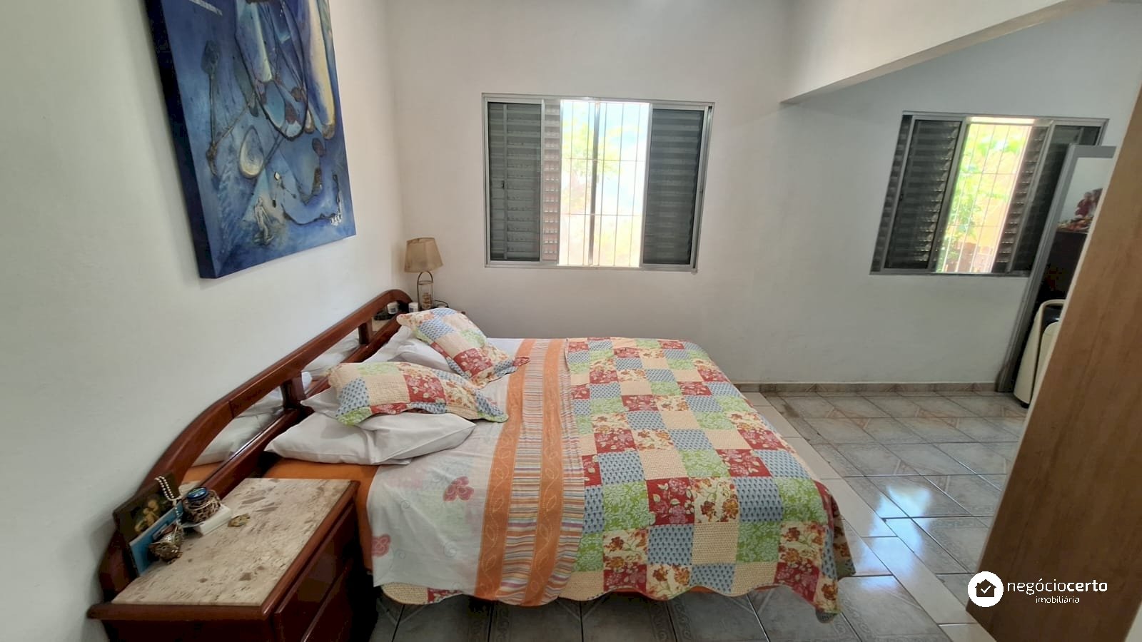 A casa principal, totalmente térrea, possui 3 dormitórios, uma ampla sala com uma aconchegante varanda e uma cozinha integrada.