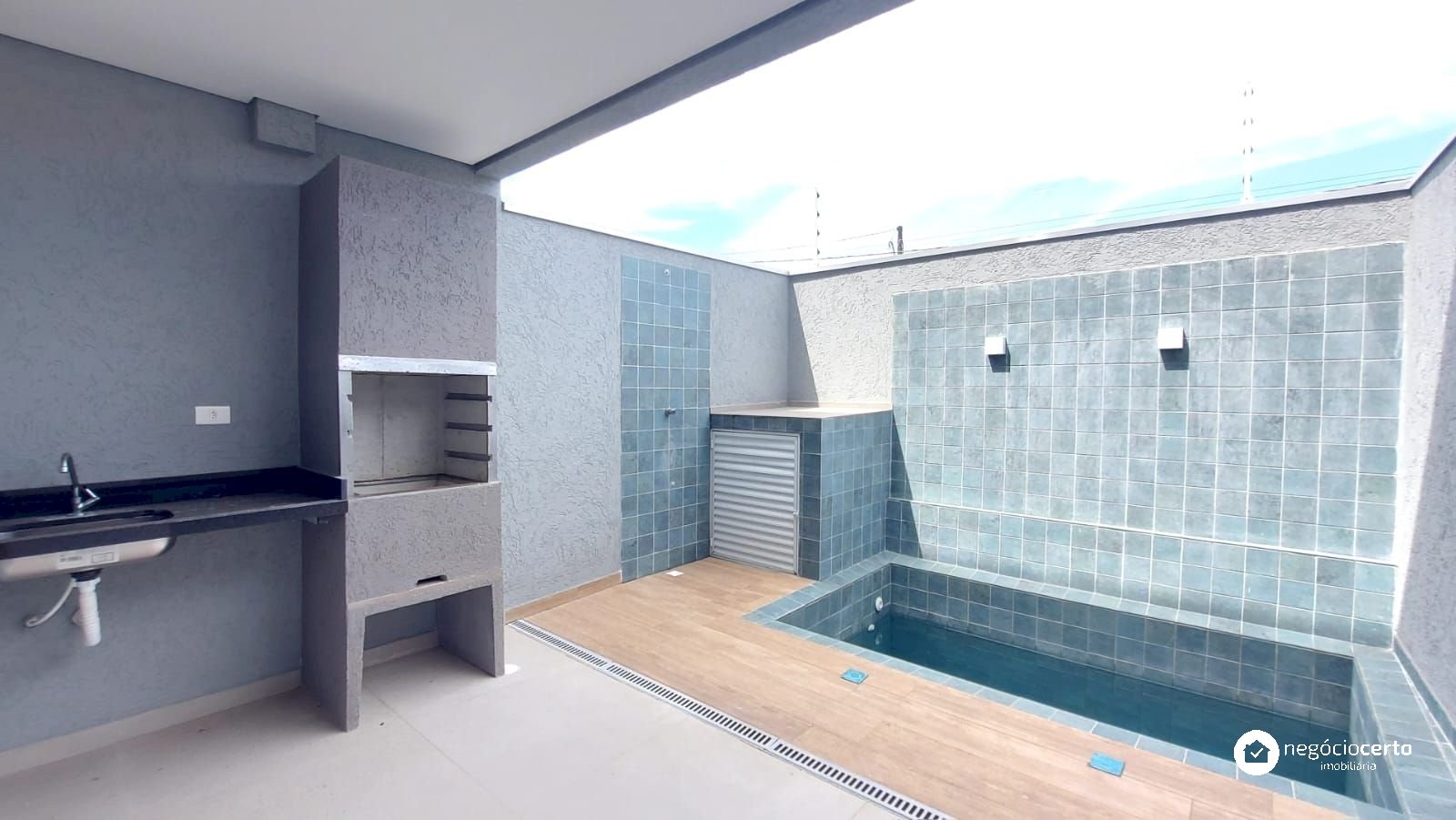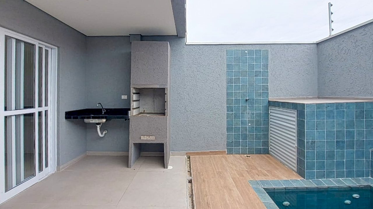 O sobrado possui no pavimento térreo uma ótima sala com lindo piso e bancada em granito incorporada a cozinha no estilo americano, com acesso a uma aconchegante área gourmet com piscina.
