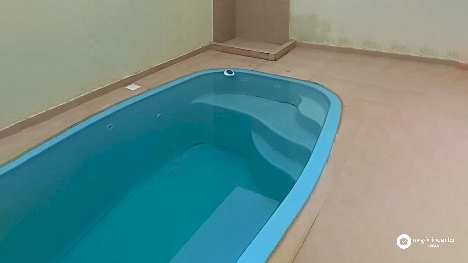 Na área externa tem uma linda piscina com cascata para seus dias de lazer.