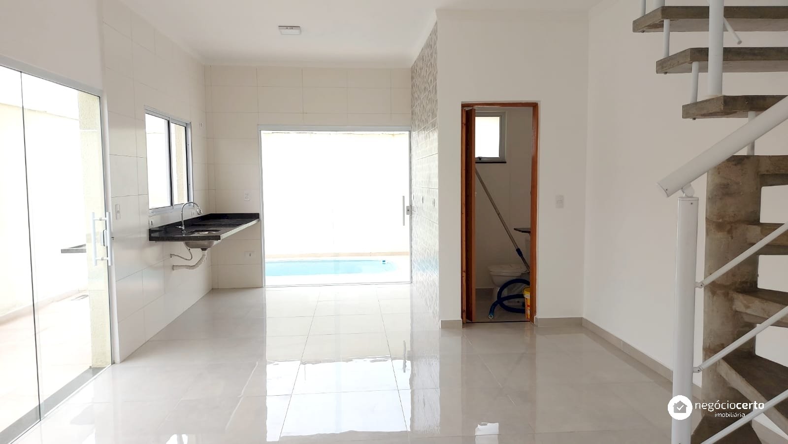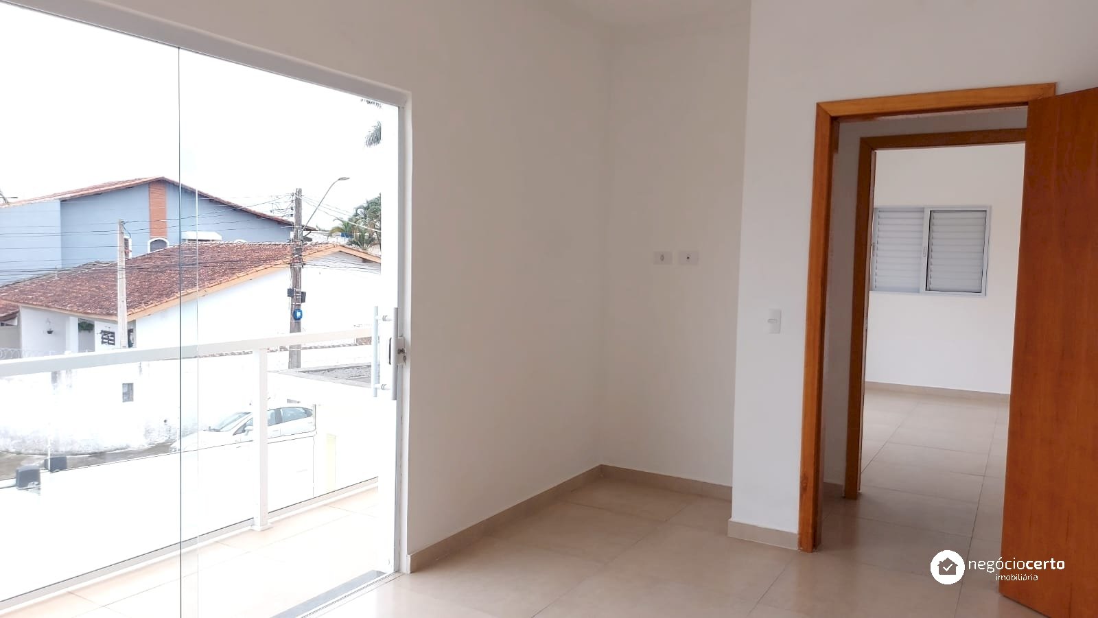 O imóvel possui no piso térreo uma ampla sala com piso em porcelanato e portas de vidro, possibilitando muita luminosidade e ventilação para o ambiente.