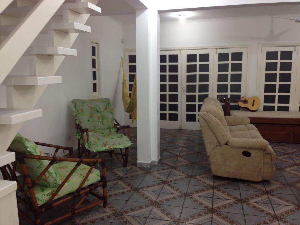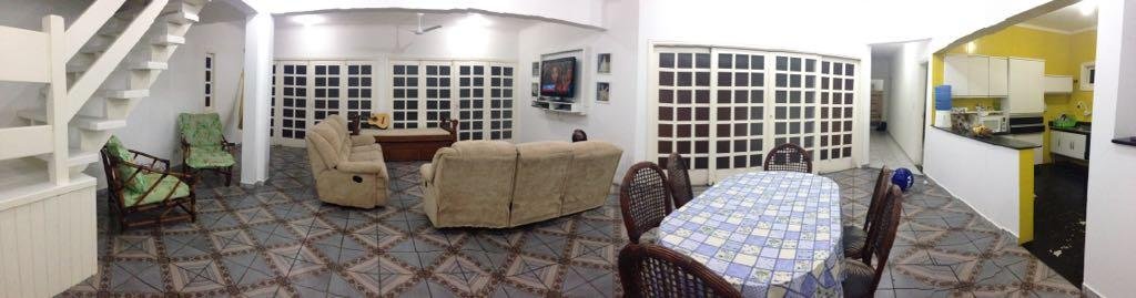 Casa a menos de 50 metros da praia, próxima da nova orla. Possui quatro dormitórios, sendo três deles suíte, sacada com vista para o mar, piscina, churrasqueira, ampla sala, cozinha e próximo do centro de Itanhaém.