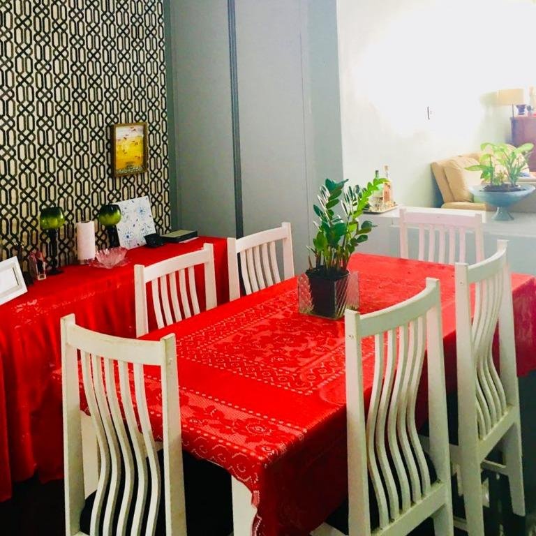 Lindo apartamento, com janelas grandes e muito arejado, a 150 metros (2 minutos a pé) da praia.Possui 4 dormitórios, sendo 1 suíte, 1 banheiro social, banheiro de serviço, sala com 2 ambientes, armários em todos os ambientes, ar condicionado nas salas, na suíte e em um quarto, ventilador de teto em todos os quartos! Cozinha com cooktop e forno elétrico. Uma vaga de garagem, não demarcada.