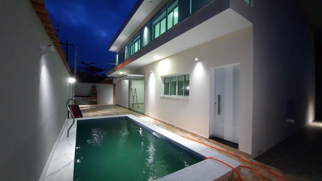 Belíssima casa na praia do sonho! 4 dormitórios, sendo 2 suítes, sala 3 ambientes, lavabo e uma ampla cozinha com vista para o mar, com excelente acabamento! Todas as janelas, portas e sacadas em vidro verde temperado, e banheiros com pias e nichos em mármore.Garagem com capacidade para até 6 carros com 3 portões de acesso automáticos e uma área de lazer com churrasqueira, pia e piscina com cascata, e uma excelente localização! Agende sua visita!